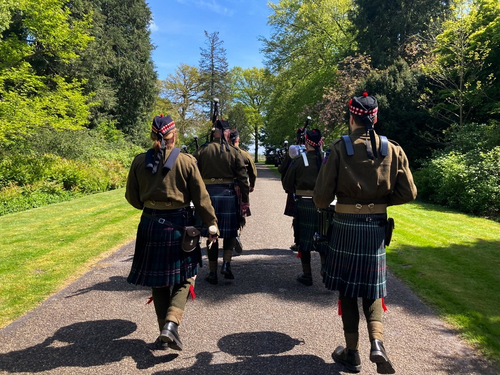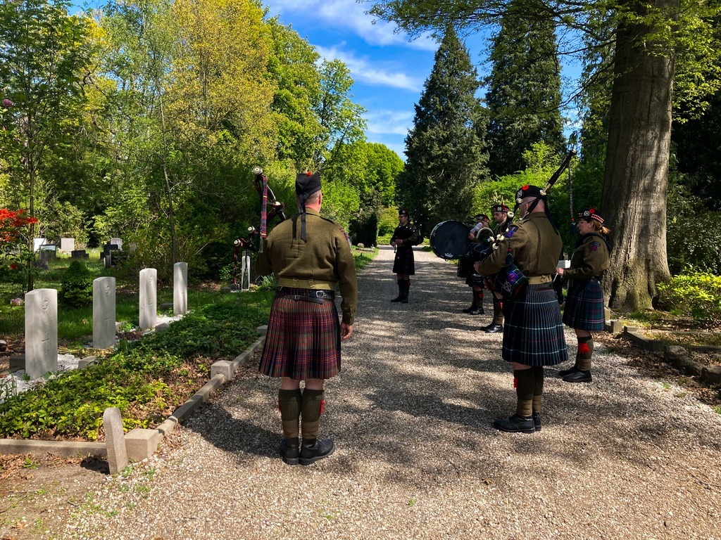 Het welbekende stuk Highland Cathedral werd gespeeld bij de graven van de slachtoffers van het Twentol Drama en daarna speelden we het nummer Closer bij de oorlogsgraven van de tweede wereldoorlog.