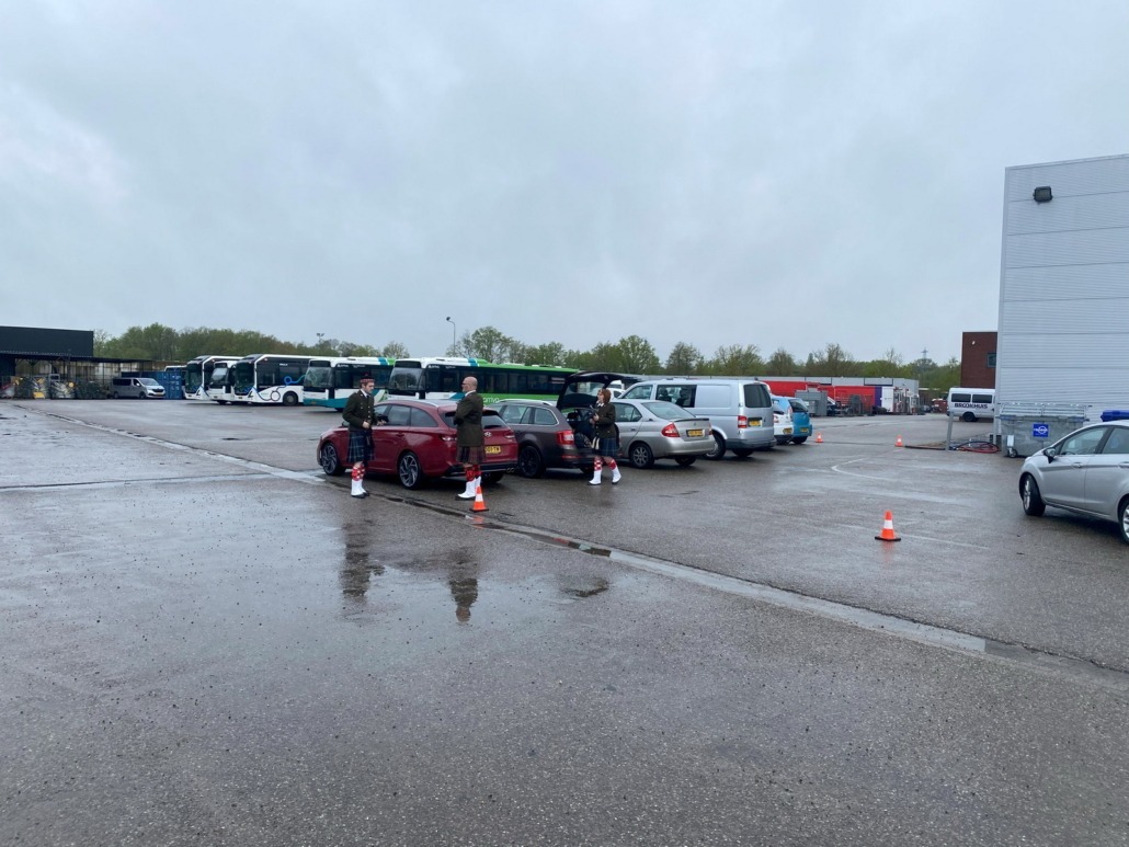 Welkom bij The Highland Regiment Pipes and Drums! Wij zijn trots om bij speciale gelegenheden een onvergetelijke muzikale ervaring te bieden. Onlangs hadden we het voorrecht om een bijzonder afscheid te begeleiden, dat van een vader die met pensioen ging na jarenlang dienst als buschauffeur.